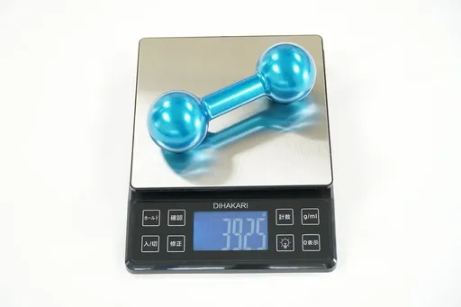 展示会向けの材質の重量比較のために削り出したサンプル部品