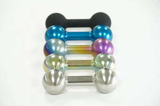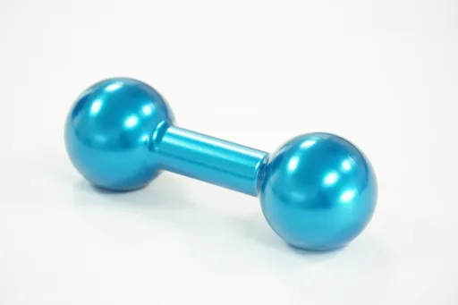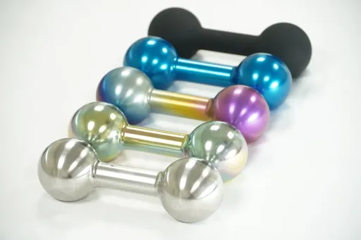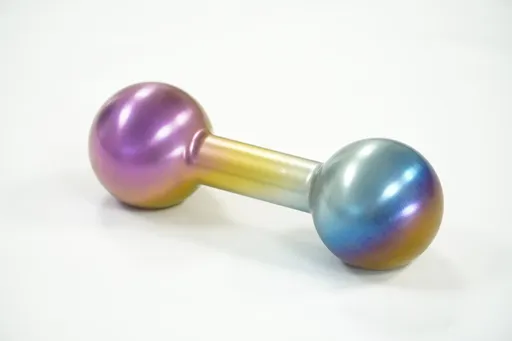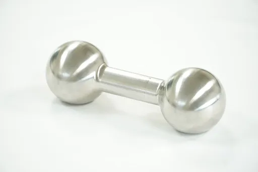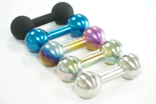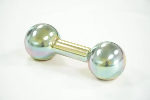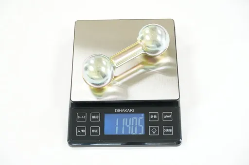 マグネシウム合金の「軽さ」を体感いただくため、当社の主要取扱金属を用いてダンベル型のサンプルを製作・展示いたしました。